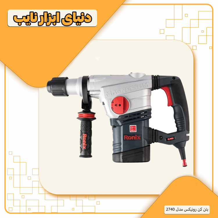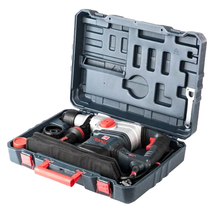 ظرف گریس ، محافظ لاستیکی ابزار گیر ، کیف همراه با 3 مته و 2 قلم ، آچار ، دسته جانبی طراحی رونیکس