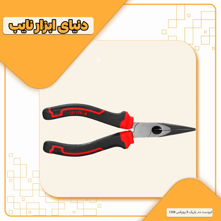 مانند انبردست، هر شخصی در جعبه ابزار خود به دم باریک نیاز دارد. این ابزار با نوک بلند و باریک خود، بیشتر در محیطهای کوچک و شلوغ یا حفرههایی که دسترسی به سیمها با دست یا انبردست ممکن نیست، کاربرد دارد. دم باریک 8 اینچ RH-1368 رونیکس، ساختهشده از جنس کربن استیل سختکاریشده بوده و دارای دستههای ارگونومیک و خوشدست است. شاید فکر کنید ارگونومیکبودن بدنه اهمیت چندانی نداشته باشد؛ اما در کارهای طولانیمدت این ویژگی بسیار به کار شما میآید و از خستگی دستهای شما در زمان کار با ابزار جلوگیری میکند.